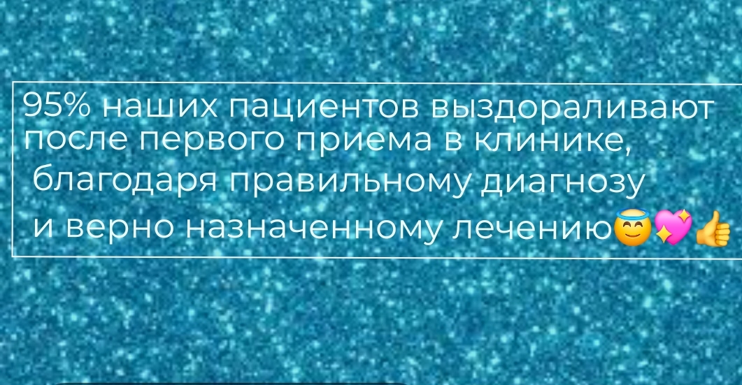95% наших пациентов выздоравливают после первого приема в клинике, благодаря правильному диагнозу и верно назначенному лечению.